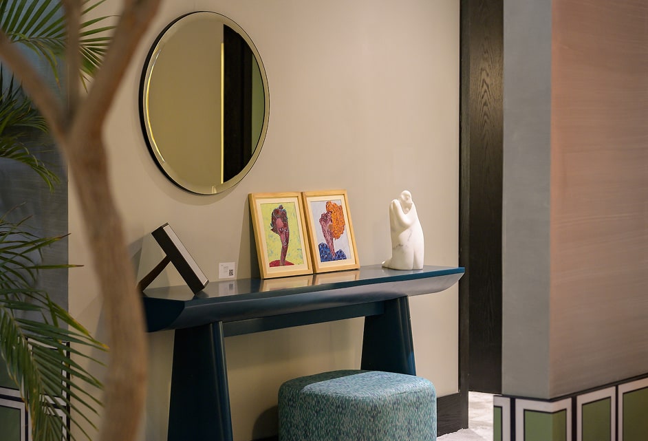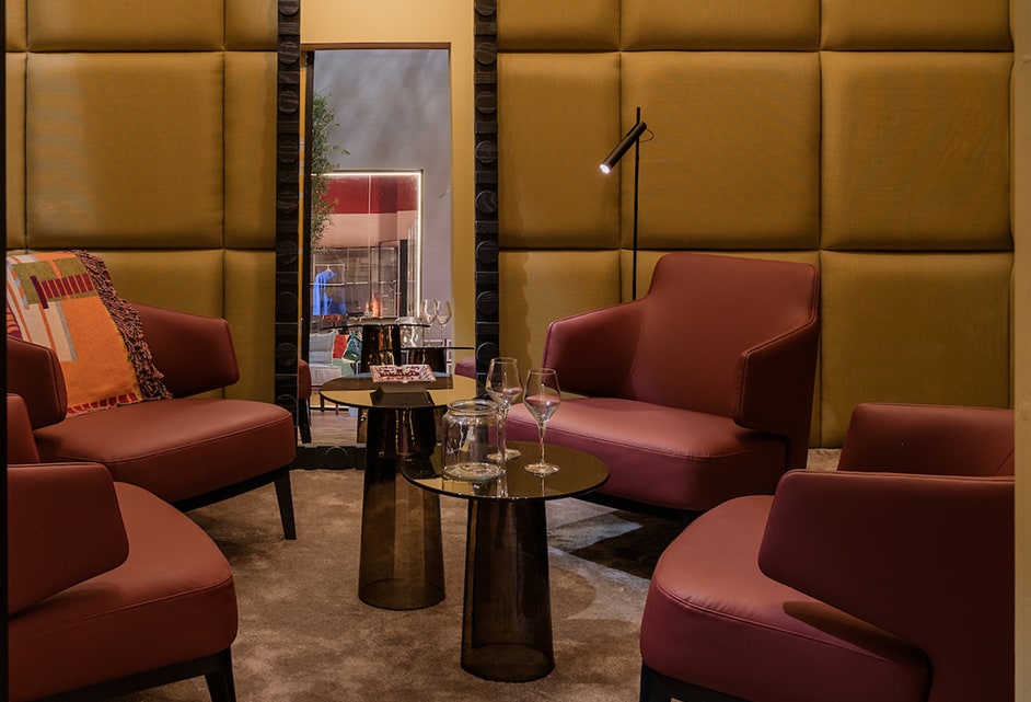 The first step brought you to a concierge desk, where a greeting set the tone. Beyond it, a lobby unfolded into acourtyard, sunlight spilling across the floor. A restobar buzzed with conversation, a cigar lounge lingered in rich,dim tones, and further on, a serviced apartment and suite invited pause. Nothing about it felt like a booth. Every space was alive, scaled to reality, layered with detail. It wasn’t about presenting products, but about showing how Mobica’s home furniture shapes entire worlds of living.